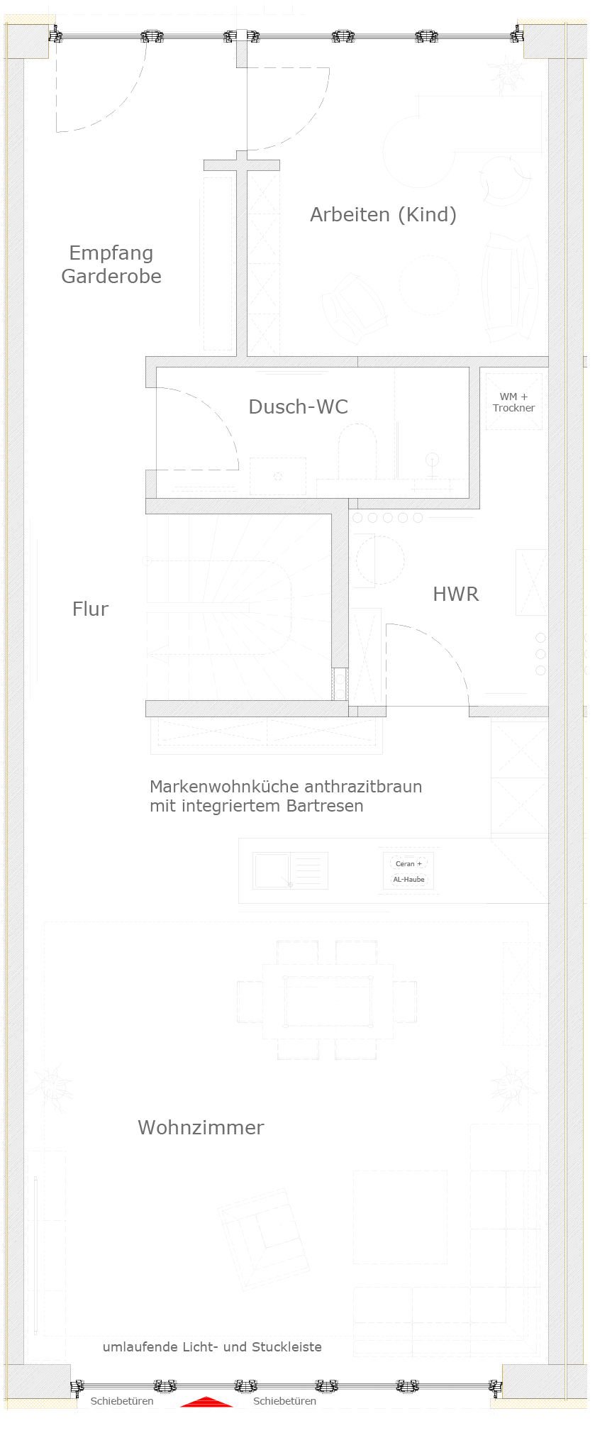 Eine großzügige Raumaufteilung lässt viel Spielraum für eine individuelle Einrichtung und gibt jedem Familienmitglied die Möglichkeit das eigene Zuhause selbst zu definieren. Dabei helfen die großen Fensterfronten mit viel Licht jedem Raum eine persönliche Note zu geben. Der Garten, der Balkon und die Terrassen bieten eine Besonderheit im Wohnkomfort, die nicht so einfach bei anderen Häusern wiederzufinden ist.